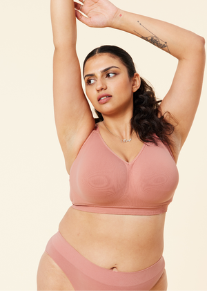 Our bras are seamlessly knitted using a super strong (but ultra soft) NILIT™ 6.6 yarn called Softex. It’s incredibly durable and longwearing, with great stretch retention. The knitted support panels and underband are ribbed and firm to provide additional lift and separation, because 80% of a bra’s support comes from here and not the straps.
